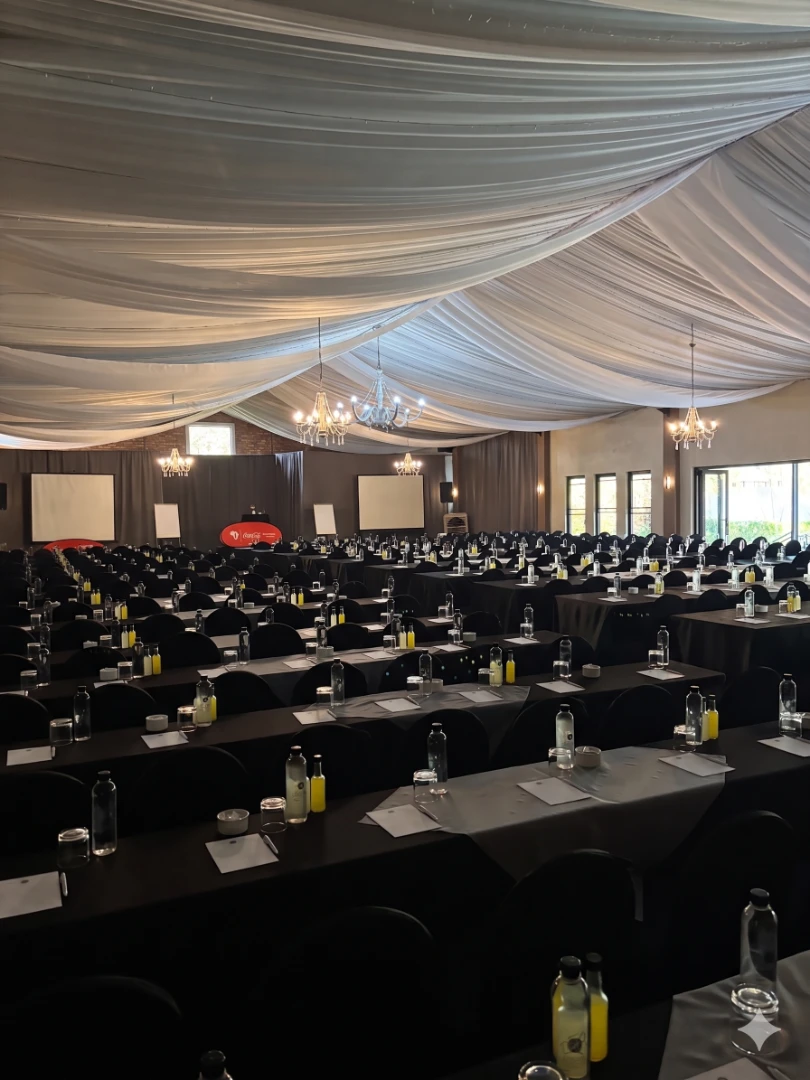 Riverside Country Estate hosts corporate conferences for 30 to 350 delegates in our Willow Hall and Wisteria Hall. We are 45 minutes from Johannesburg and 20 minutes from OR Tambo, with on-site accommodation, full AV setup, and a dedicated events team.